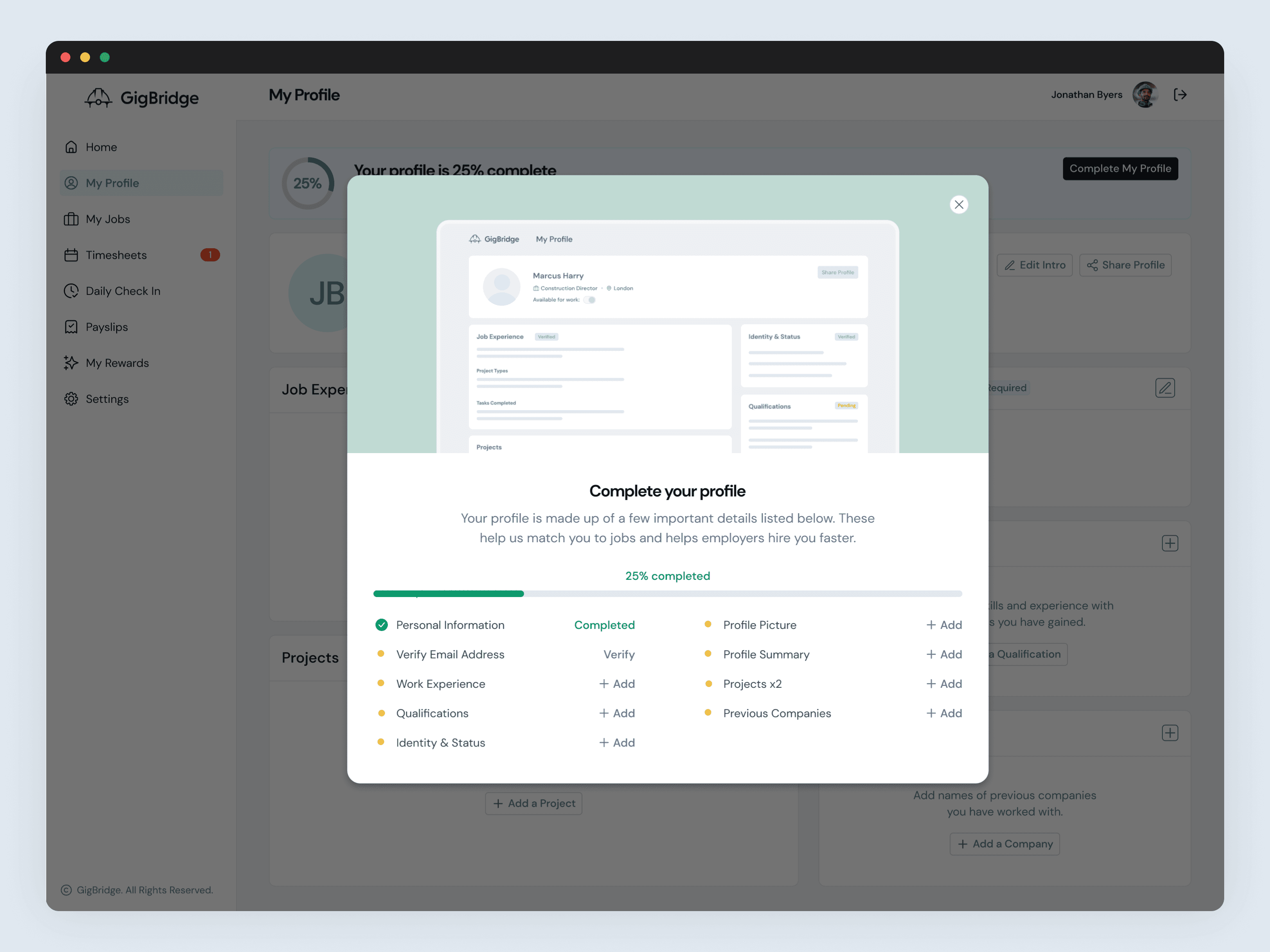 Profile Completion: We introduced a profile completion checklist and guide after onboarding to help users complete missing parts of their profiles.
