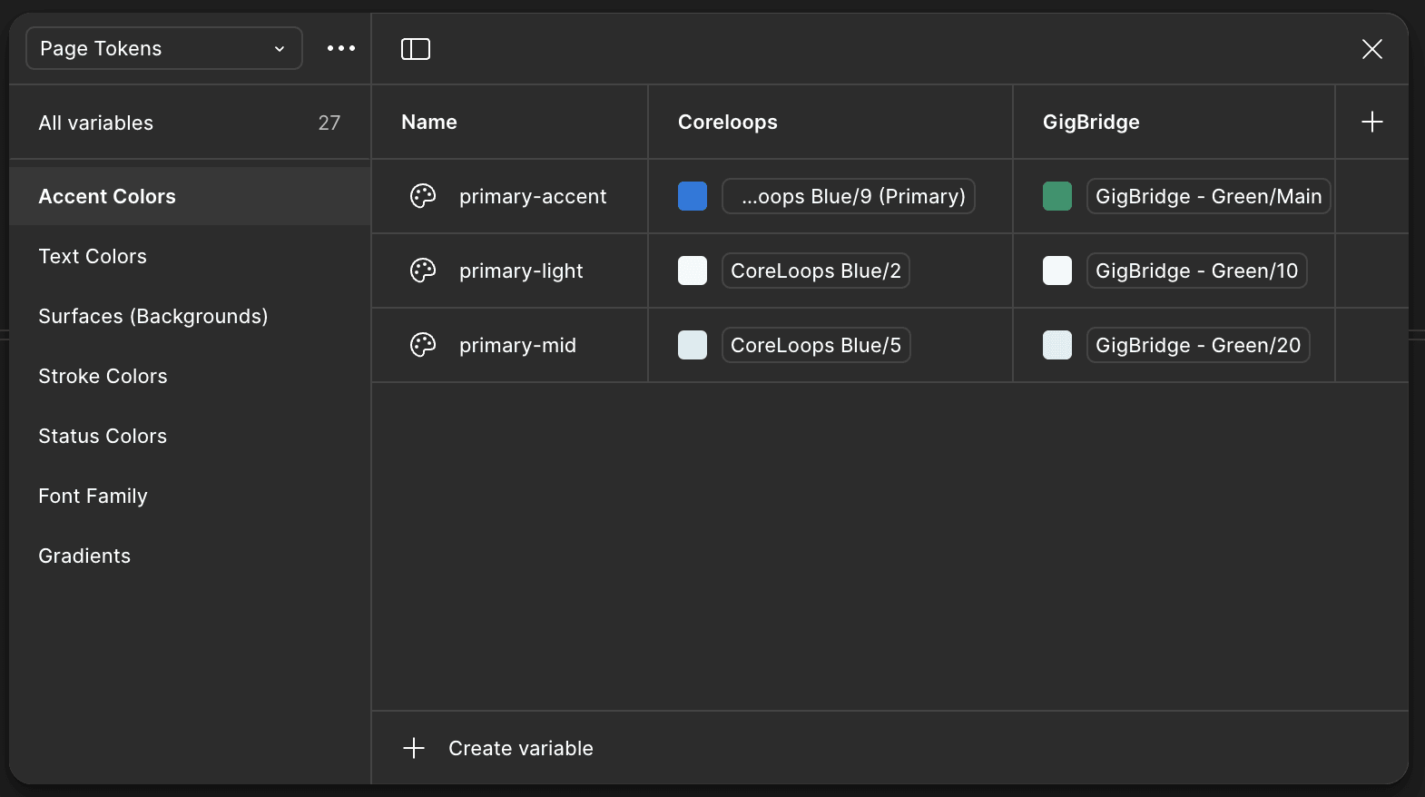 Fast rebranding using Figma variables: I had set up design tokens early on, which allowed us to swiftly update themes, colors, and typography across the product by simply switching tokens.